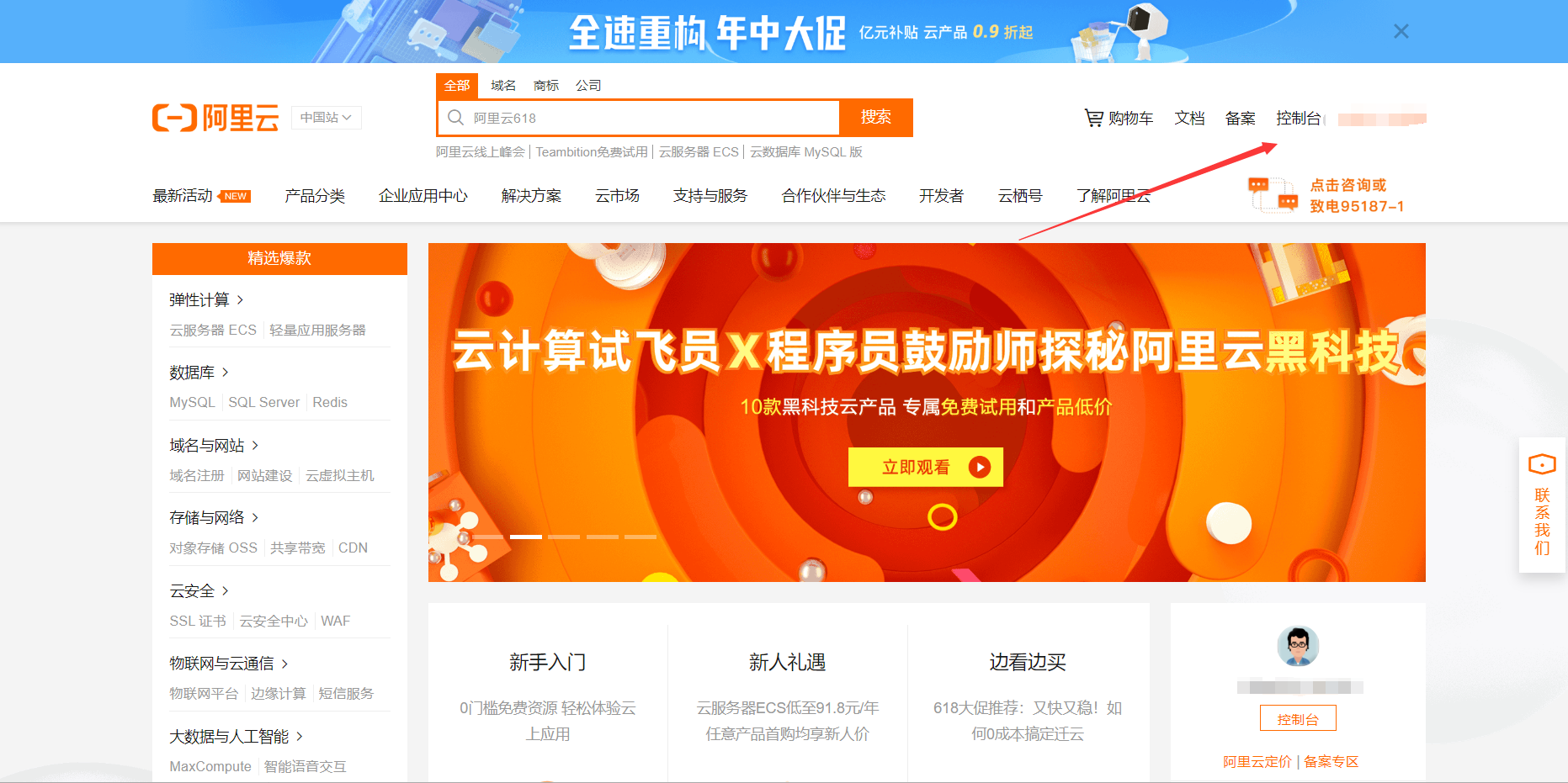 打开网页进入阿里云官网,阿里云可以使用支付宝或淘宝账号登录,如果提示实名认证就按照提示来。
